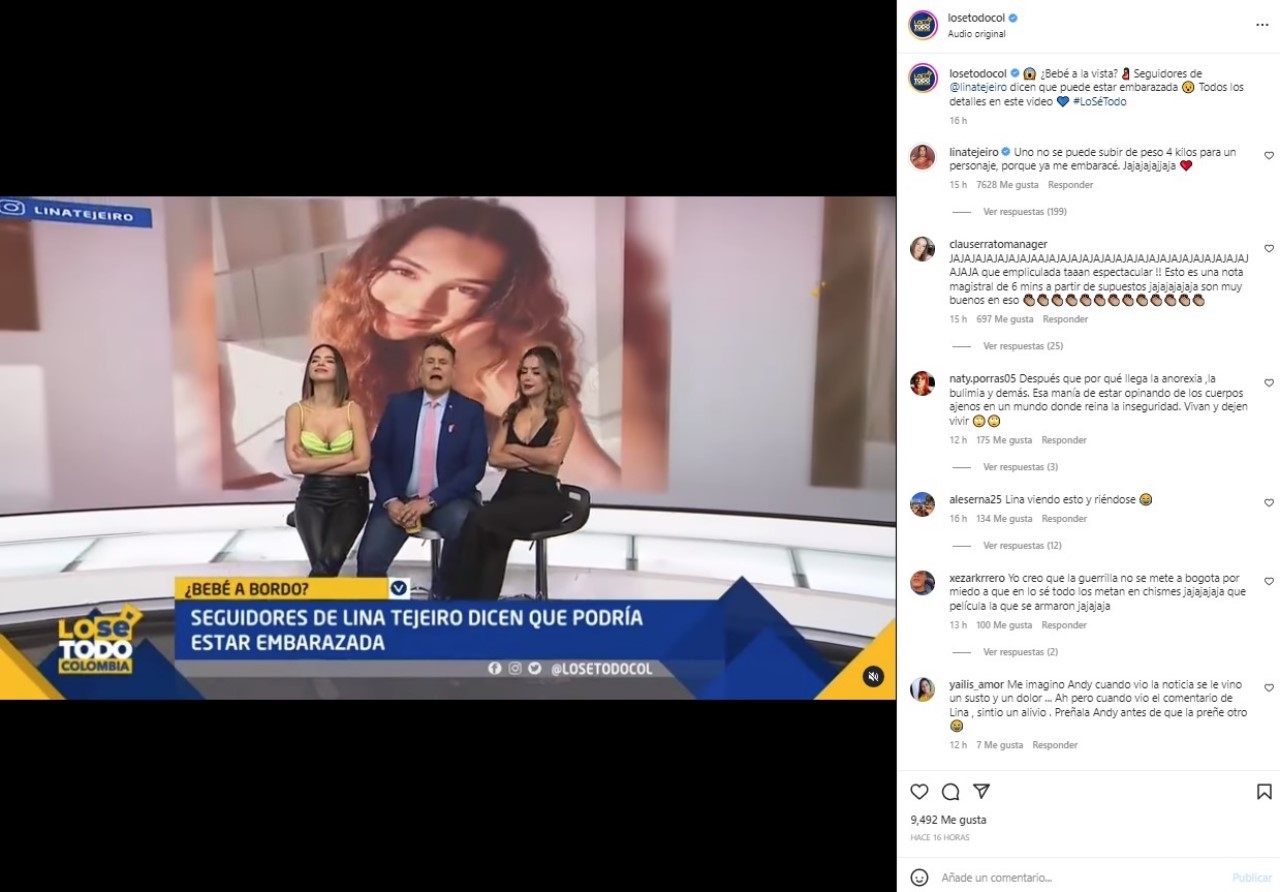 El programa ‘Lo sé todo’ estuvo hablando sobre el supuesto embarazo de la actriz, quien no dudó en responder por medio de un mensaje en el post del programa,
