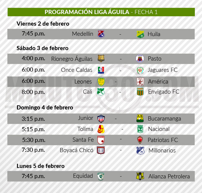 Minuto30.com- La Dimayor dio a conocer este viernes los horarios de la primera fecha de la Liga Águila I-208.