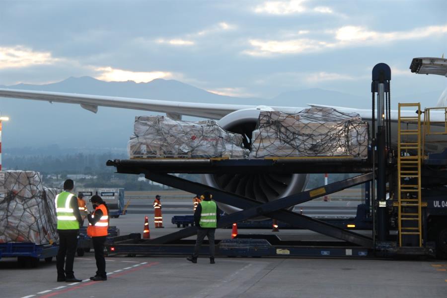 Los primeros ocho respiradores, de un lote de cincuenta donados a Ecuador por la ONG española Ayuda en Acción para hacer frente a la pandemia de COVID-19, llegaron este lunes a Quito a bordo de un avión de la compañía Air Europa.