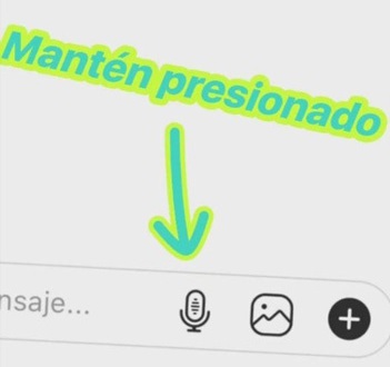 Básicamente funcionará igual que Whatsapp, dejar apretado el icono del micrófono y listo, o si deseas ponerle candado para que sueltes todo el chisme más cómodamente, desliza el dedo hacia arriba, o sea, algo así: