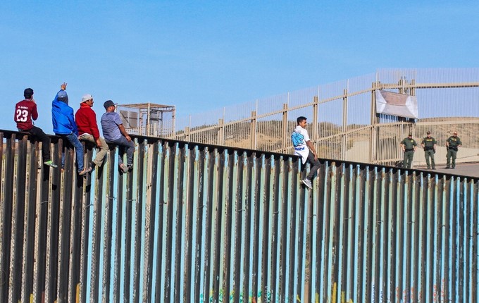 Decenas de migrantes centroamericanos alcanzaron hoy la frontera México-Estados Unidos y treparon la valla que divide ambos países en una especie de primera meta en su objetivo final de entrar a la Unión Americana.
