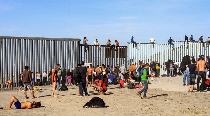 Ante las dificultades para ingresar a Estados Unidos, los migrantes se han apostado a lo largo de la línea y el faro y otros se bañaron en el mar.