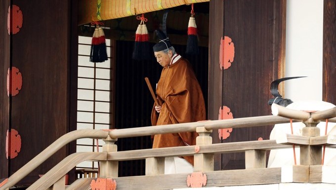 Ellos con frac y ellas con trajes occidentales o vistosos kimonos, todos siguieron con atención cómo Akihito y Michiko se colocaban en un estrado, teniendo a su lado dos de los tres tesoros imperiales (una espada y un cofre con una joya de jade).