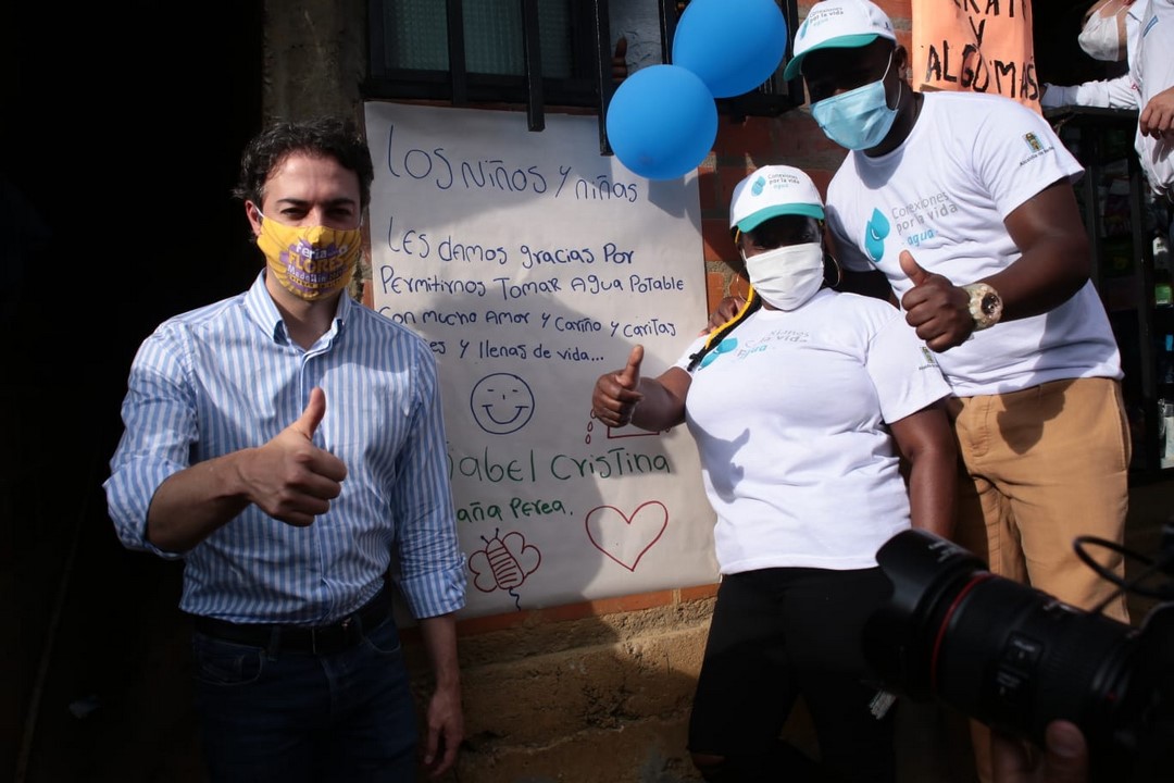 Jonathan Malagón, ministro de Vivienda, Ciudad y Territorio en compañía del alcalde de Medellín y el gerente general de EPM visitaron el sector Esfuerzos de Paz 1 en Medellín y desde allí anunció el aporte de 3 mil millones de pesos para la conexión de más hogares al servicio de acueducto en la ciudad.