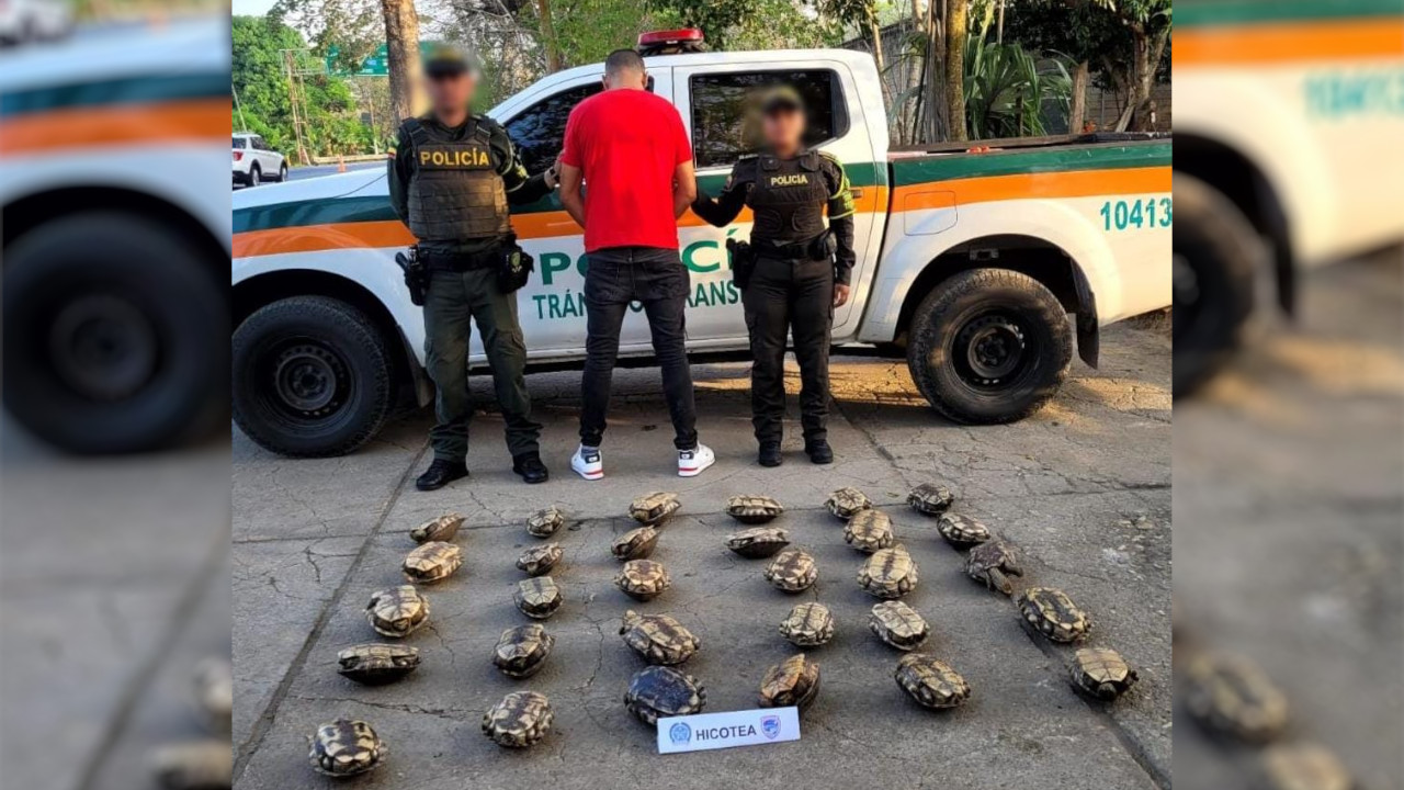 Uniformados de la Seccional de Tránsito y Transportes, capturaron en flagrancia a un hombre con 30 tortugas hicoteas, que eran transportadas en costales.