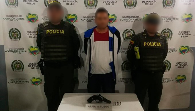 En el barrio Araucarias 1, en Bello, las autoridades arrestaron a un hombre el cual fue descubierto portando un revólver y cinco cartuchos dentro del mismo.