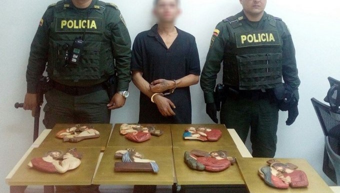 Y es que el hombre tuvo a bien entrar al mencionado recinto de estudio católico para llevarse varias piezas de arte religioso.