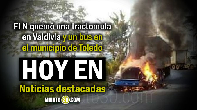 - ELN quemó una tractomula en Valdivia y un bus en el municipio de Toledo