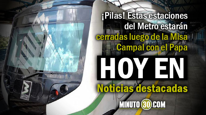En este resumen noticioso encontrará los hechos más importantes de la cotidianidad local y nacional del día. ¡Pilas! Estas estaciones del Metro estarán cerradas luego de la Misa Campal con el Papa Con una herida mortal en la tráquea y otra en la clavícula ingresó “El Zarco” a Policlínica Capturaron un hombre de 60 años […]