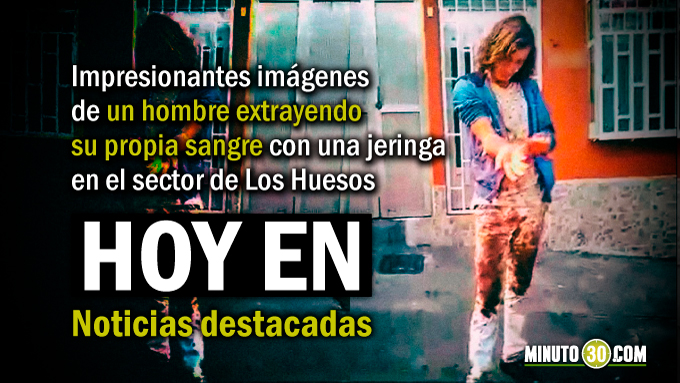 - Impresionantes imágenes de un hombre extrayendo su propia sangre con una jeringa en el sector de Los Huesos