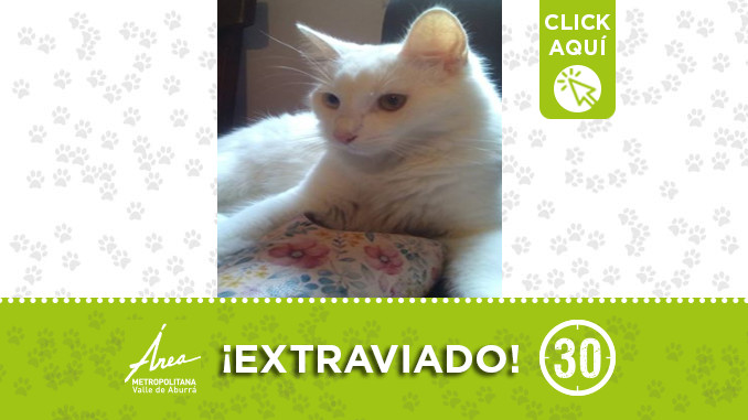 Este gatico se perdió por el barrio Simón Bolívar del municipio de Itagüí. Si usted lo ha visto por favor llamar al: 3003183202. ¡Difunde!