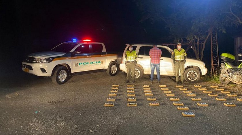 De acuerdo con la Fisclía, en el vehículo en el que se movilizaba los policiales hallaron una caleta instalada en la parte trasera, que contenía 44 paquetes con 43.000 gramos de cocaína.
