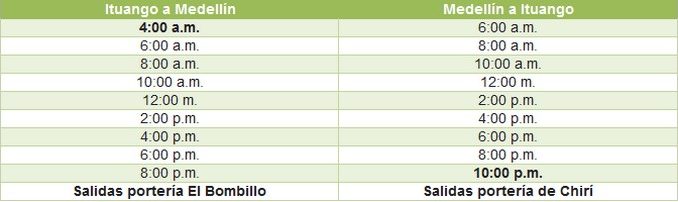 Las horas dispuestas en ampliación de las caravanas quedan así: una a las 4:00 a.m. en el sentido Ituango-Medellín y otra a las 10:00 p.m. en el sentido Medellín-Ituango.