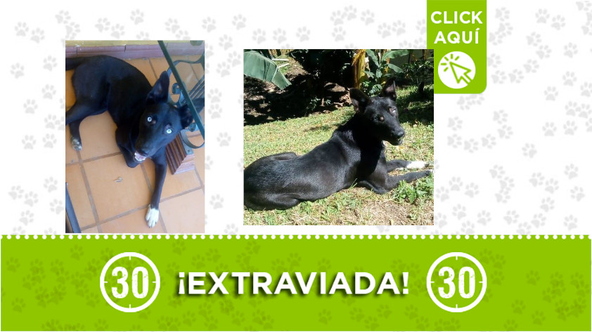 Esta perrita se perdió el 11 de diciembre por el sector de Milán en Envigado, por el patinódromo. El sábado 12 de noviembre fue vista en la noche por el sector de Postobón en Itagüí, cercano al barrio Simón Bolívar.