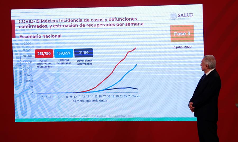 México suma al momento más de 261.000 casos de coronavirus y 31.119 defunciones, mientras que Estados Unidos, epicentro mundial de la pandemia, ha superado los 2,93 millones de casos confirmados y los 130.000 muertos.