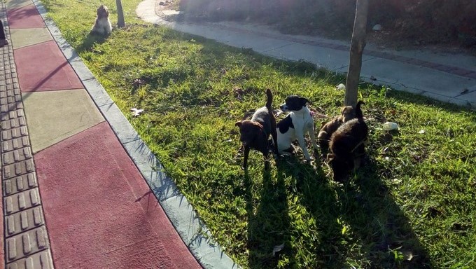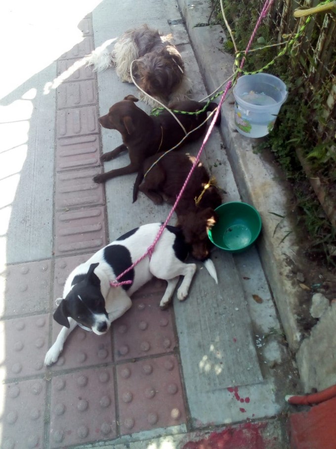 Estos perritos pasaron casi toda la mañana amarrados en una calle cercana al puente de la Madre Laura en Medellín.