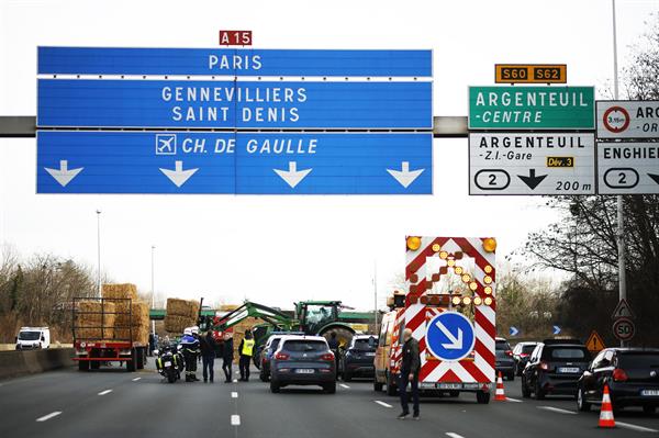 París, 29 ene (EFE).- Los agricultores han concretado esta tarde su amenaza de proceder a un 'asedio' a París con bloqueos en algunos de los grandes ejes de acceso a la capital, mientras el presidente, Emmanuel Macron, reunía un gabinete de crisis.
