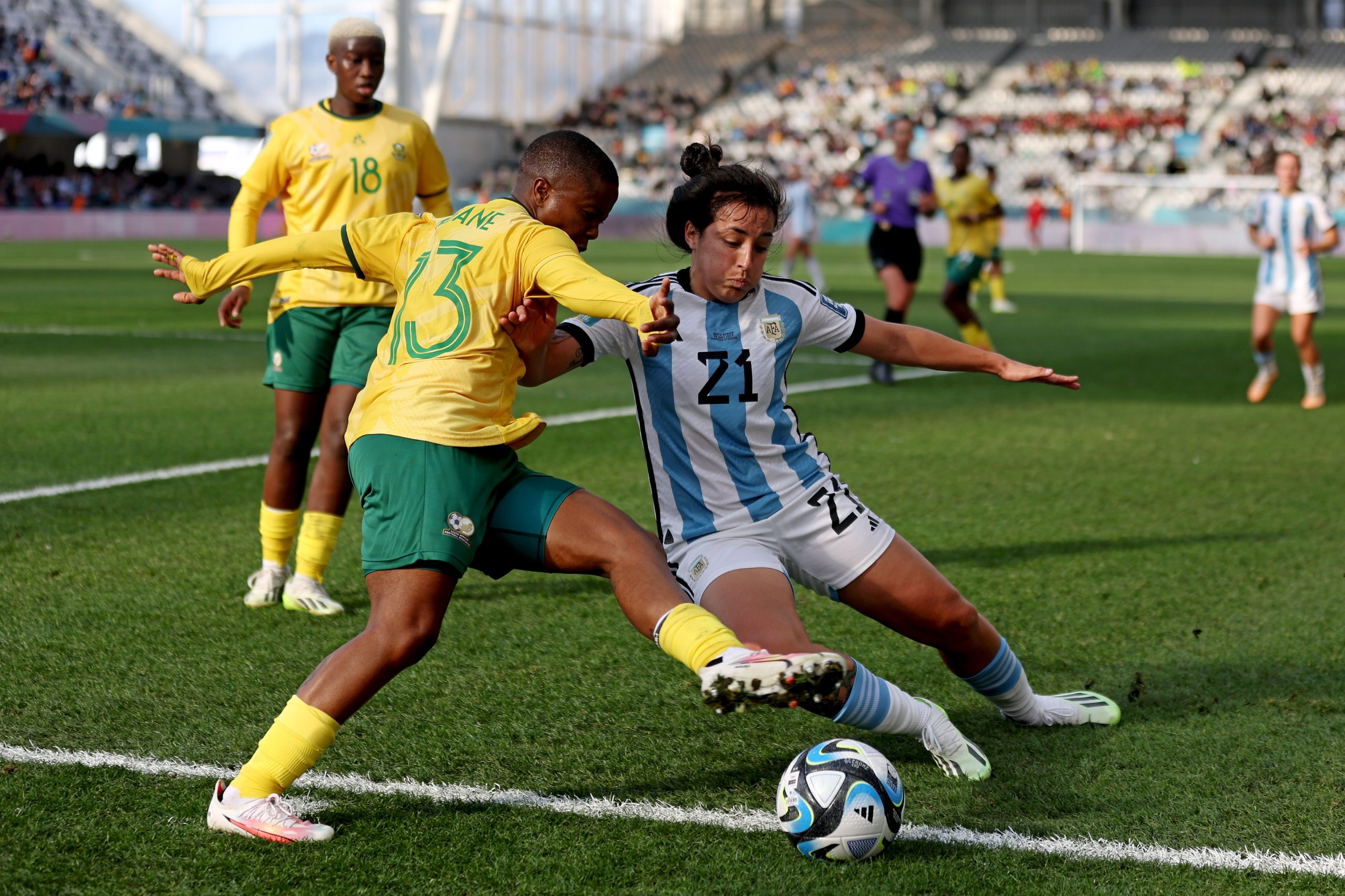 En la segunda mitad, tras otro error en la defensa albiceleste, Thembi Kgatlana puso dos goles de distancia entre ambos equipos.
