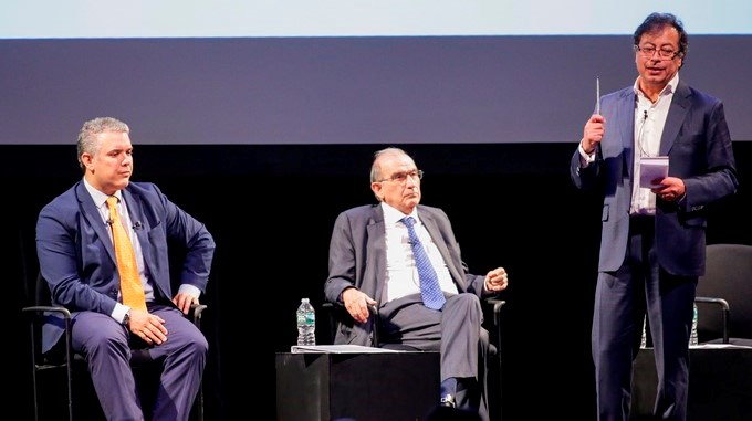 Los candidatos colombianos Iván Duque, Gustavo Petro y Humberto de la Calle defendieron hoy la paz en su país durante un foro celebrado en Nueva York y que estuvo condimentado con críticas al mandatario venezolano, Nicolás Maduro, y cierta distancia frente al presidente de EE.UU., Donald Trump.
