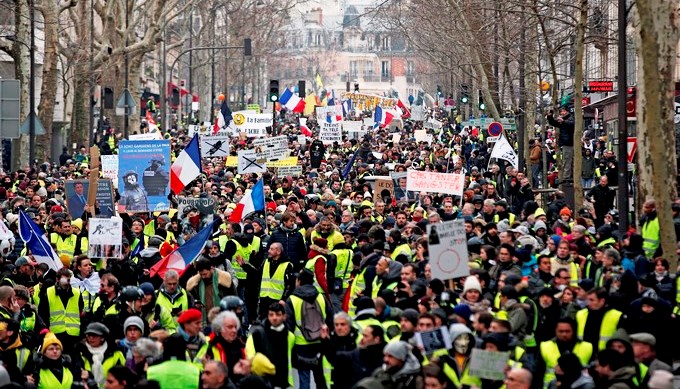 Rodrigues, subido a una tarima, exhortó a los participantes en la protesta, en la que también participó Eric Drouet, el joven camionero que figura entre los impulsores de los “chalecos amarillos”.