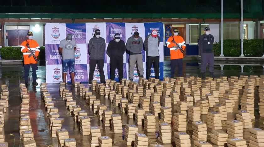 En el operativo lograron la captura de los 5 hombres que iban a bordo de una lancha tipo Go Fast, en la que hallaron 66 costales con 1.646 kilos de cocaína.
