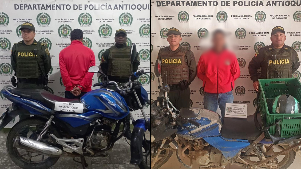 La Policía Antioquia capturó a dos sujetos que estaban andando en motocicletas que se registraban como hurtadas.