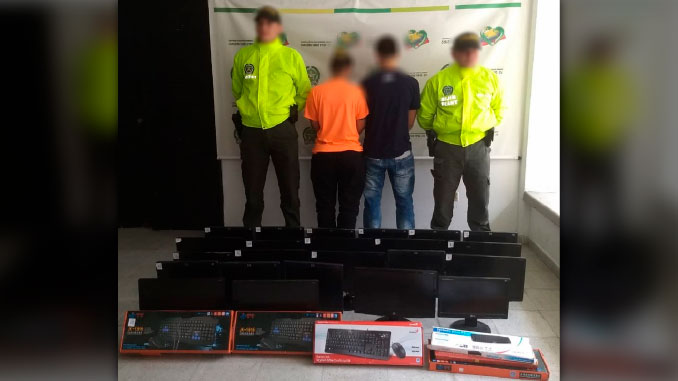 La Policía de Antioquia confirmó que logró capturar a dos personas que tenían en su poder computadores de una institución educativa de la vereda La Samaria, del municipio de Salgar.
