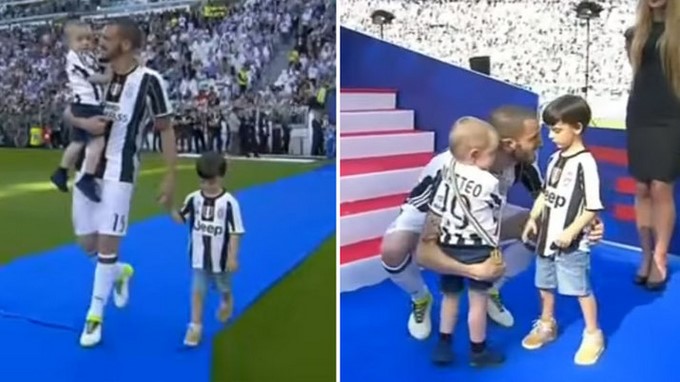 El defensor Leonardo Bonucci de la Juventus tuvo que lidiar con la tristeza de su hijo mayor durante la premiación del campeón de la Serie A.
