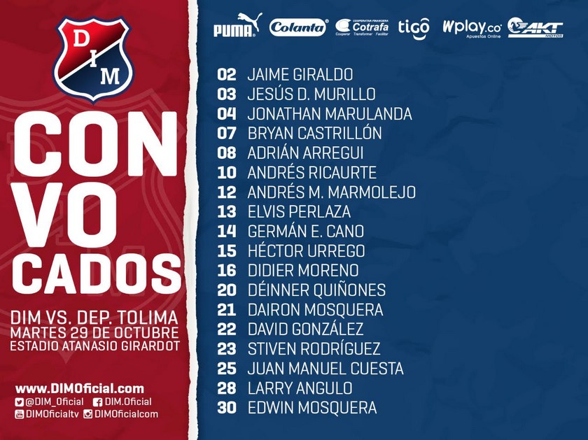 Minuto30.com- Deportivo Independiente Medellín tendrá altas para enfrentar este martes (7:30 p.m.) a Deportes Tolima, tal y como lo adelantamos este lunes en la mañana.