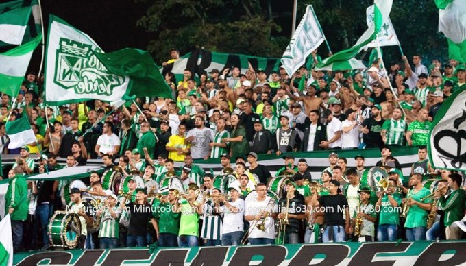 Seguidores de Atlético Nacional en estadio Atanasio Girardot.,