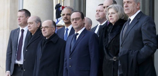 El presidente francés, François Hollande, saludó a los jefes de Estado y de Gobierno presentes y a continuación se dirigió hacia la cabecera de la manifestación, donde se hallan las familias de las víctimas de los atentados de la última semana, con quienes mantuvo un emotivo encuentro. EFE