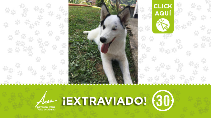 Este perrito está perdido, vive en Sabaneta, sector La Doctora, es un Pumsky blanco. Si tiene alguna información sobre el paradero de este perrito, por favor comunicarse al número 3175173155. ¡Difunde y ayuda!