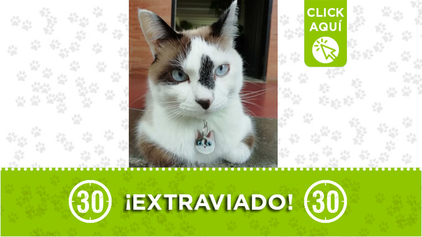 Este gatico se perdió desde el 30 de enero en Niquía. Si usted lo ha visto por favor llamar a los números: 3214709752 – 3127054682. ¡Difunde!