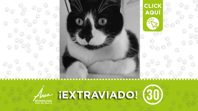 Este gatico se perdió hace 4 días por el barrio Santo Domingo. Si usted lo ha visto por favor llamar al 3008087260 – 3003448102 ¡Difunde!