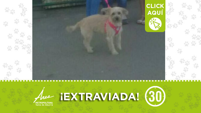 Esta perrita se perdió por el barrio Barichara, en San Antonio de Prado. Si usted la ha visto por favor llamar a los números: 3108809747 – 3213148554. ¡Difunde!