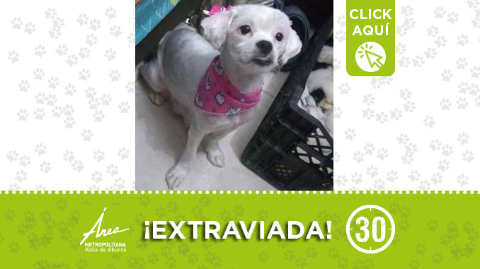 Esta perrita se perdió por el barrio Aranjuez. Si usted la ha visto por favor llamar a los números: 5218601 – 3005344590. ¡Difunde!