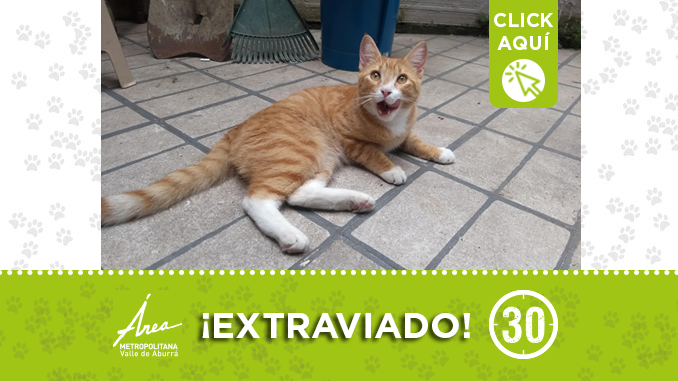 Este gatico se perdió por el barrio La América. Si usted lo ha visto por favor llamar al 3137481790 – 2632491. ¡Difunde!