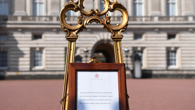 Una nota oficial anuncia el nacimiento del hijo de los duques de Sussex a las puertas del Palacio Buckingham. EFE/ Facundo Arrizabalaga