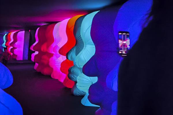 El museo tiene espacio para la creación española de Miranda Makaroff, 'Caos sincronizado', donde un infinito pasillo de personajes inflables que cambian de color reflexiona sobre la complejidad intrínseca de la mente humana.