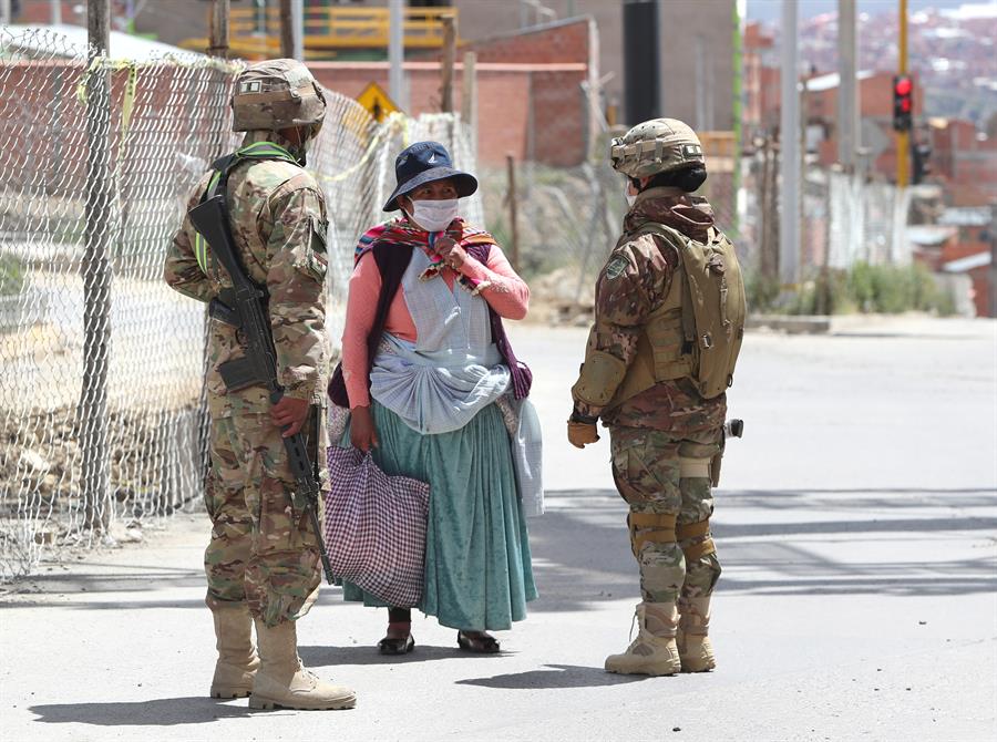 Bolivia, que registra seis muertes y 107 casos confirmados de COVID-19, se encuentra en estado de emergencia sanitaria desde el 22 de marzo, con una cuarentena más severa, fronteras cerradas y restricciones de circulación peatonal y vehicular, entre otras medidas.
