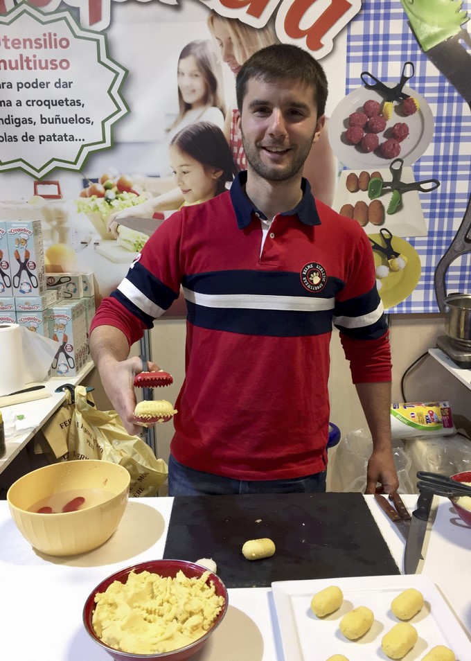 “En España dices que es para hacer croquetas y saben para qué es, sin embargo aquí tenemos que decir que también sirve para hacer bolas de carne o bolas de arroz para el sushi, por ejemplo”, señaló.A lo largo del salón se pueden observar también tapas de retrete intercambiables, peladores de fruta que se manejan con un dedo, reglas con compás integrado, perchas para patines, tiritas que cubren la herida sin necesidad de pegarlas, o incluso palos para recoger las bolas de petanca sin tener que agacharse.