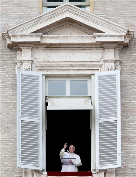 El papa Francisco rezó el Ángelus dominical asomado a la ventana del Palacio Apostólico del Vaticano ante miles de personas que abarrotaban la plaza y aledaños para esperar ya habitual recorrido del pontífice argentino entre fieles y peregrinos.