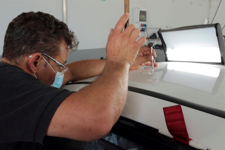 Estos especialistas, días después de la fuerte tormenta, se han convertido en un recurso imprescindible para muchos concesionarios y talleres de vehículos para hacer frente a la gran cantidad de reparación de los vehículos que deberán afrontar en los próximos meses.