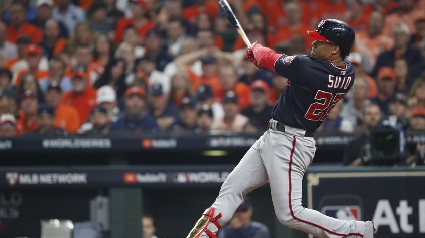 Ambas novenas están protagonizando la primera Serie Mundial en la que el equipo visitante ganó en los primeros seis juegos, luego de que los Nacionales ganaron los primeros dos en el campo de los Astros, y éstos se acreditaron tres victorias en la casa de Washington. De regreso en Houston, los Nacionales volvieron a ganar.