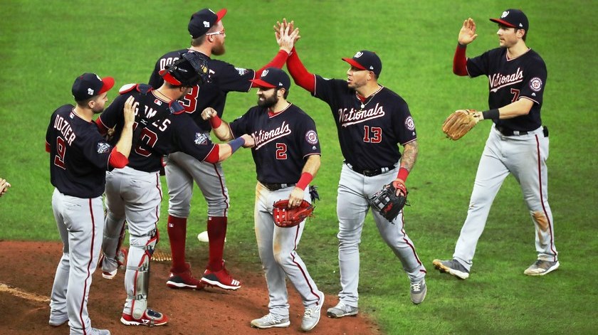 Ambas novenas están protagonizando la primera Serie Mundial en la que el equipo visitante ganó en los primeros seis juegos, luego de que los Nacionales ganaron los primeros dos en el campo de los Astros, y éstos se acreditaron tres victorias en la casa de Washington. De regreso en Houston, los Nacionales volvieron a ganar.