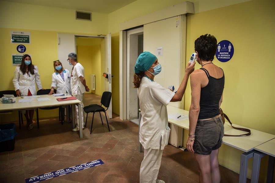 Una amplia proporción de los nuevos contagios se identifican en Italia con casos importados del extranjero, por lo que se efectúan pruebas de detección a las personas llegadas de los países considerados de riesgo: España, Malta, Grecia y Coacia.
