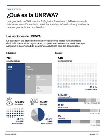 La UNRWA trabaja para brindar apoyo, protección y cubrir las necesidades más básicas de unos 5,6 millones de refugiados palestinos registrados en Jordania, el Líbano, Siria, Cisjordania y la Franja de Gaza, pero teme ser incapaz de seguir adelante si la comunidad internacional le da espalda y se queda sin fondos para la asistencia humanitaria de emergencia en el enclave palestino.