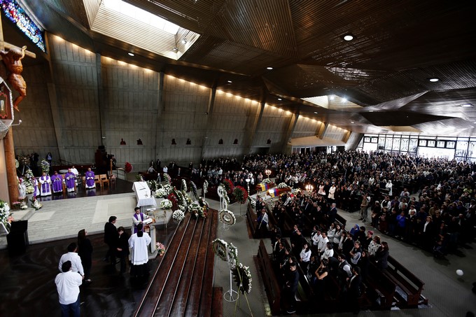 También periodista, la pareja del reportero gráfico agradeció a toda la sociedad ecuatoriana por acompañar a los familiares en la iglesia, que recibía a los asistentes con una gran bandera de Ecuador en el piso sobre la que se leía “Hay esperanza, nadie se cansa” y “Nos faltan tres”, frases que también se reprodujeron desde marzo pasado en las concentraciones y vigilias.