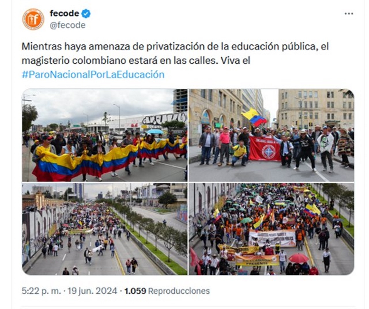 Asegura Fecode que “Mientras haya amenaza de privatización de la educación pública, el magisterio colombiano estará en las calles”.