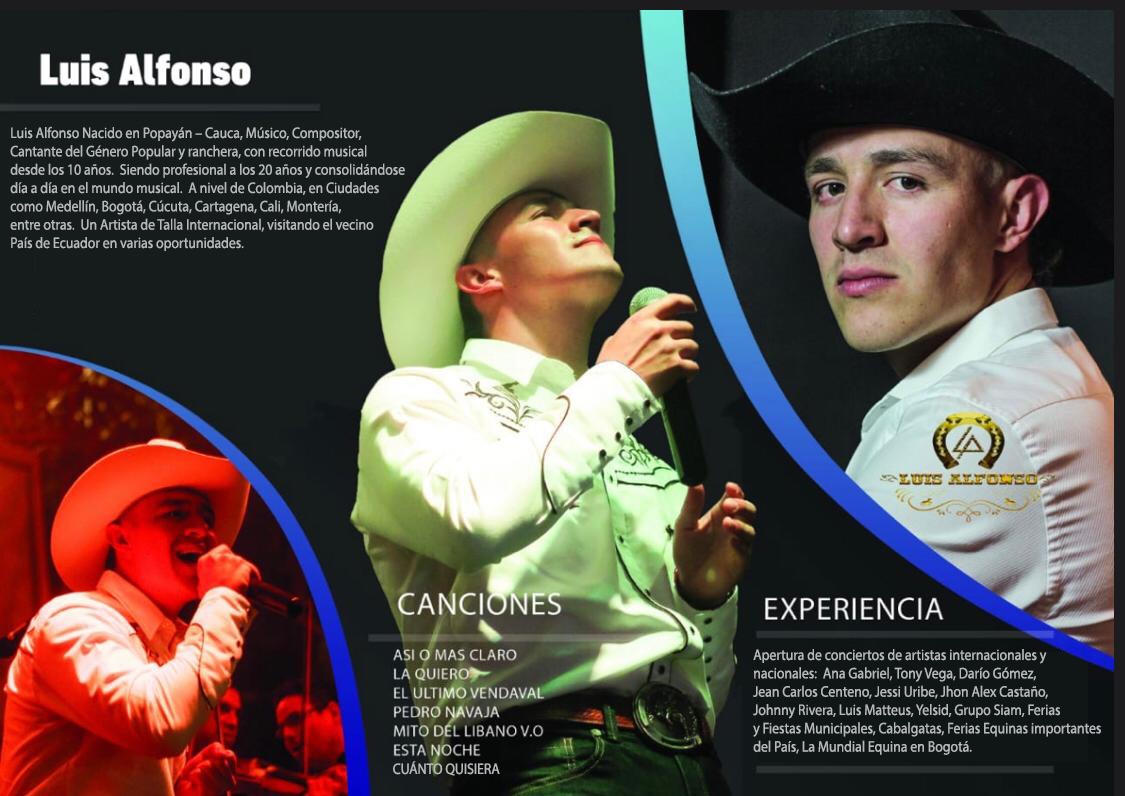 Esta Noche es una ranchera inspirada en el gremio caballista, con los arreglos especiales de producción por el Master Jorge Parra, ingeniero del Estudio Salvaje Music. El video estuvo a cargo de Visual1, la reconocida empresa que tuvo la fortuna también hace algunos años de rodar, los videos de J.Balvin. Luis Alfonso espera conquistar México y Ecuador, donde su mayor sueño es cantarle a Vicente Fernández su ídolo además de llegar a la final de “A Otro Nivel” Caracol Televisión, ya que después de 150 participantes que fueron a Brasil, él es uno de los 38 que quedan en la contienda que volverá a grabarse cuando el covid-19, lo permita.